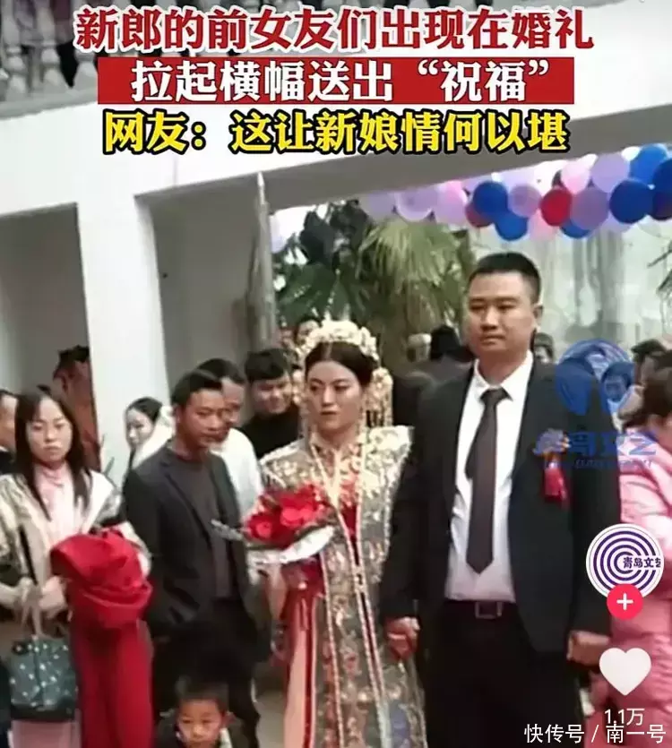 据了解:男子曾经有过多位女朋友,可以说婚前男女关系比较混乱,但是男子最后遇见了自己的真爱决定结婚,不再流连忘返于风月之中。可是当男子结婚当天,大概有十几位前女友一起来到男子的结婚现场。这些前女友甚至是拉着横幅,给男子婚礼现场助威。