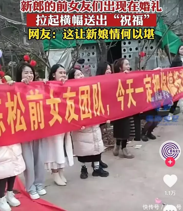 男子结婚场面壮观,多位前女友拉横幅送祝福,引发众多网友羡慕