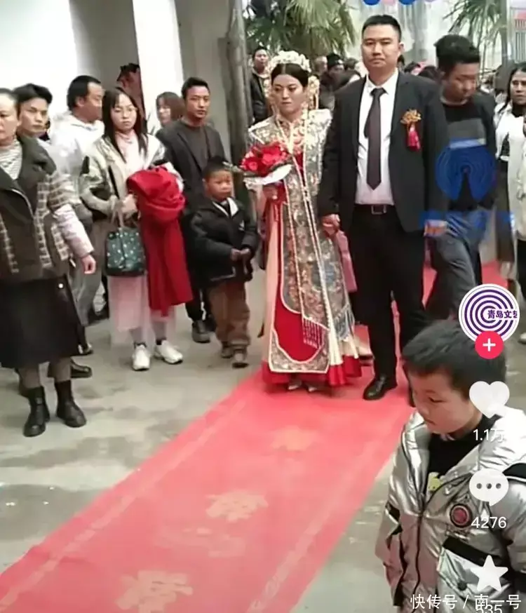 当男子看见后,满脸通红很是无奈,而新娘子本人更是全程没有笑脸。