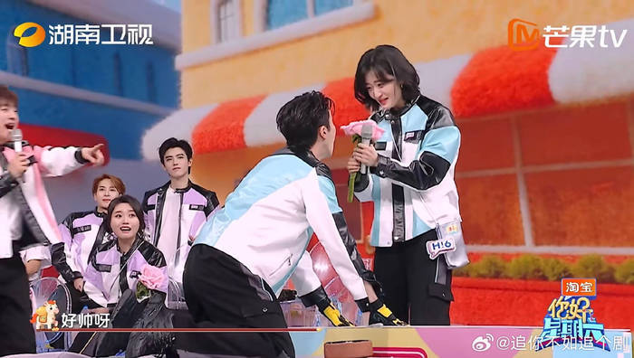 除了果蔬汁名场面,这期节目笑点就没断过。陈飞宇和孙千重现经典台词时,高瀚宇被硬拉去当“背景板”,全程缩在角落不敢说话,内心OS全写脸上,被网友调侃“演我嗑CP时的尴尬状态”。王嘉尔更是承包全场笑点,跨栏环节像装了弹簧,丝滑到让何炅都惊掉下巴;围观别人练舞时又秒变“吃瓜群众”,多角度探头的样子像极了屏幕前的我们。不得不说,《你好星期六》真是把“欢乐”二字刻进DNA里,每期都能让人笑到肚子痛!