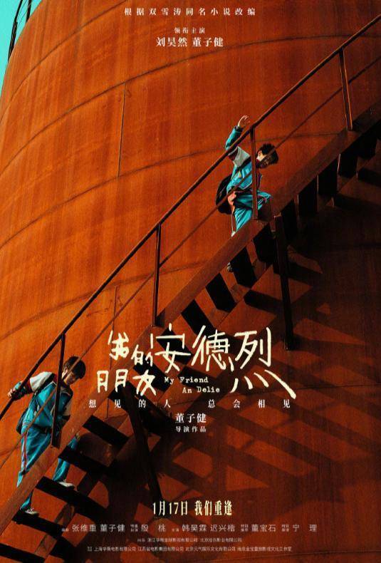 观众一致好评的一张封面,是两个孩子在一个大烟筒走,调色很复古,上面还有这部电影的名字,像一部书的封面。